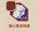 "蕙心要術残書" 謀略の最終ステージで使うやつ。元宝ショップでも売ってないし?まだ集められていない人はどうすれば。万事屋のショップのラインナップに追加してくれればいいのに。